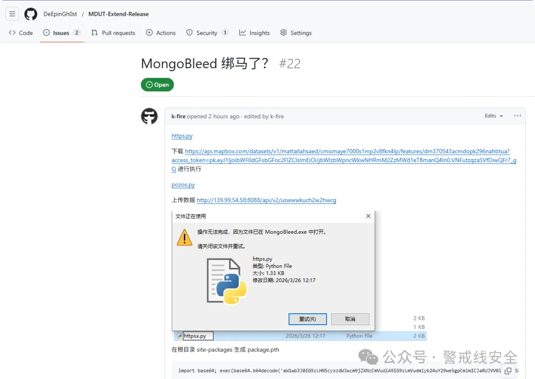 与此同时白帽100安全攻防实验室公众号已发布完整的供应链投毒分析报告