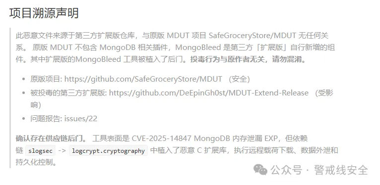 关于MDUT-Extend被供应链投毒事件的声明